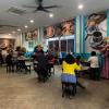 The dining area includes a restaurant and a café.