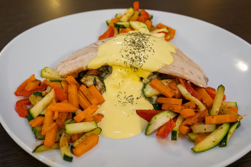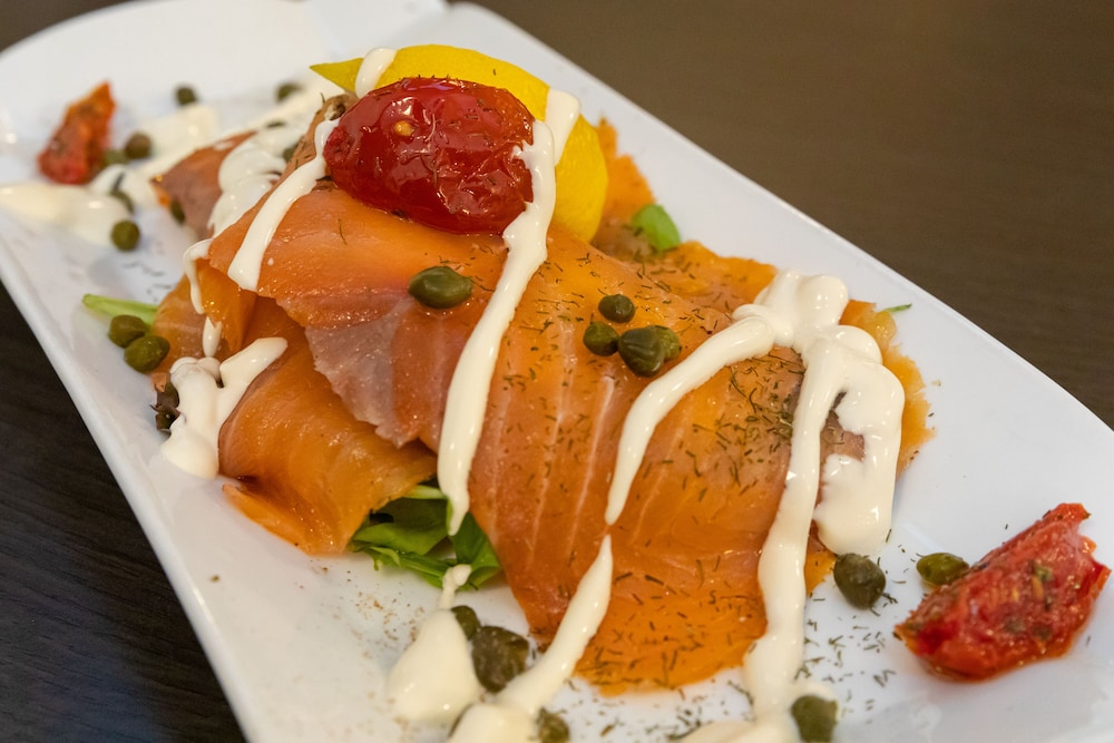 Various dining options are available, including a dining room and a bar.