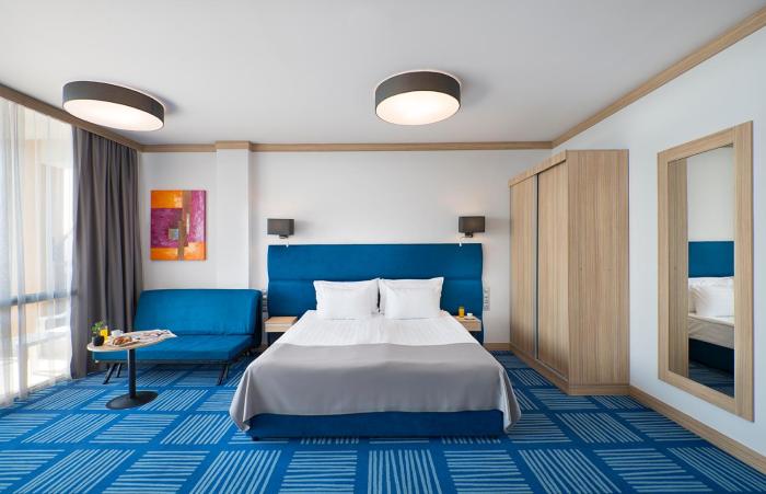 This spa hotel is located in a quiet area, in Golden Sands, about a quarter mile from the beach. The center is about a quarter mile away. The nearest airport is Varna (VAR), located approximately 20 miles away.