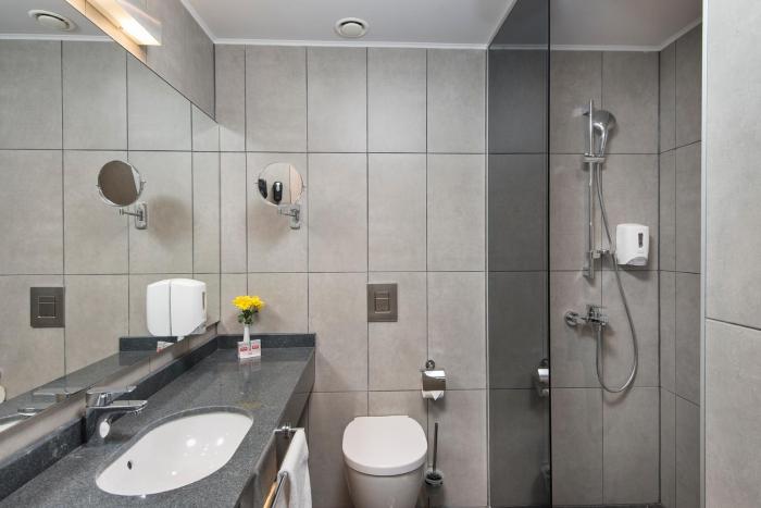 Air conditioning and central heating ensure that rooms maintain comfortable temperatures. A balcony is included as a standard feature in some rooms. All rooms are carpeted and include a double bed or a sofa bed. Children's beds and extra beds can be requested for younger guests. Guests may safely secure their valuables in a safe for an additional fee. Extra comforts include a refrigerator. A direct dial telephone, a television with satellite/cable channels and WiFi (no extra charge) provide all the essentials for a comfortable vacation. Bathrooms are equipped with a shower and include a hairdryer. The resort has family rooms and non-smoking rooms.