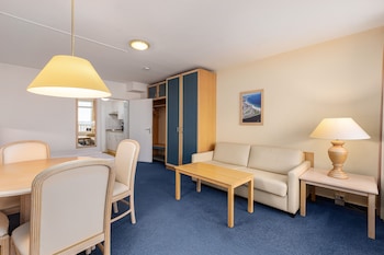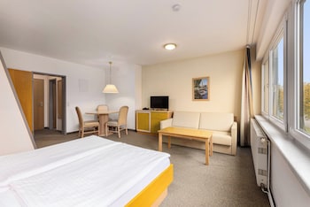 I stayed there a couple of nights because I really missed the ocean and didn't want to sleep in Hamburg. The room was actually a mini-apartment! It had a living room, a small balcony, a little...