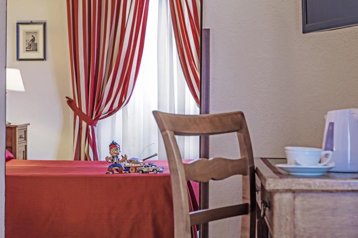 Air conditioning and central heating ensure that rooms maintain comfortable temperatures. In some rooms, a terrace is included as a standard feature. Rooms have a double bed, a queen-size bed, a king-size bed or a sofa bed. Children's beds and extra beds can be requested for younger guests. A safe, a minibar and a desk are also available. Features include a mini fridge and a tea/coffee station. A telephone, a TV, a plug adapter and WiFi provide all the essentials for a comfortable vacation. A hairdryer and a vanity mirror are available in the bathrooms, which are equipped with a shower and a bathtub. As an extra convenience, bathrooms provide cosmetic products. Family rooms are available for parents with children.