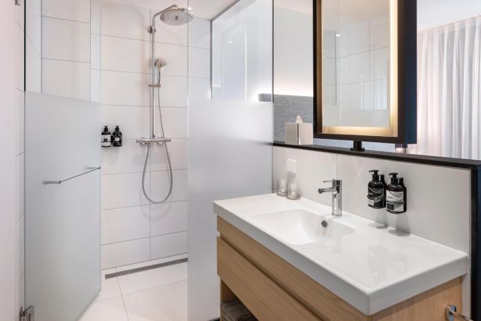 Rooms include air conditioning and central heating. Separate bedrooms can be reserved. A safe, a minibar and a desk are also available. Additional features include a refrigerator and a tea/coffee station. An ironing set is provided for guests' convenience. A telephone, a TV, a radio and WiFi (no extra charge) are provided as well. Slippers are included. A hairdryer and bathrobes are available in the bathrooms, which are equipped with a shower and a bathtub. Some of the wheelchair-friendly rooms have a wheelchair-accessible bathroom. The hotel has non-smoking rooms.