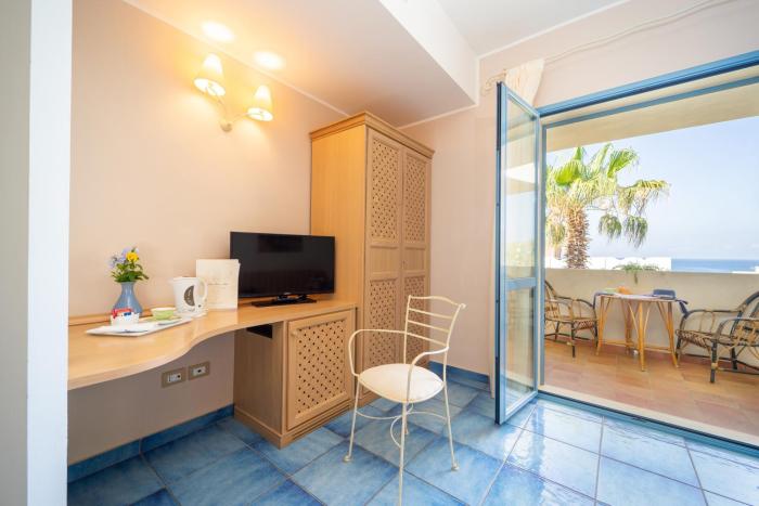 Air conditioning and individually adjustable heating ensure that rooms maintain comfortable temperatures. Guests can enjoy the sea view from a balcony or terrace. The rooms have a double bed and a sofa bed. Separate bedrooms can be reserved. Children's beds can be requested for younger guests. A safe, a minibar and a desk are also available. Guests will also find a refrigerator included among the standard features. Internet access, a direct dial telephone and a television with satellite/cable channels provide all the essentials for a comfortable vacation. Bathrooms are equipped with a shower and a hairdryer. Wheelchair-friendly rooms with wheelchair-accessible bathrooms are also available. The club has family rooms and non-smoking rooms.