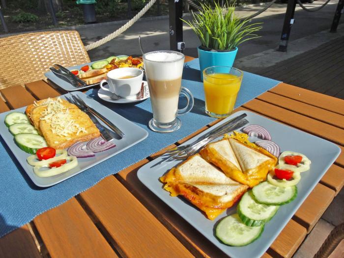 The dining area includes a restaurant and a café. A delicious breakfast provides energy for the rest of the day.