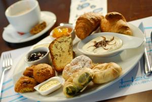 6 junior suites, 6 single rooms and 30 double rooms are located on 4 stories and can be reached by elevator. The 24-hour reception desk makes arrival and departure effortless. Amenities include a safe and a currency exchange service. Wireless internet access allows guests to stay connected while on vacation. A variety of shops are available, including a supermarket. Additional amenities include a newspaper stand and a TV room. Guests arriving by car can park their vehicles in the parking lot. Further services and facilities include medical assistance, room service, a wake-up call service, a laundry service and a hairdresser. Active guests can make use of the bicycle rental service to explore the surrounding area.