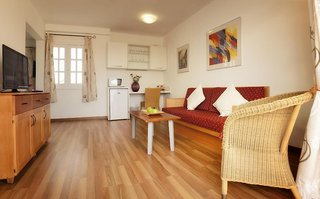 Rooms include air conditioning and central heating. Guests can enjoy the sea view from a balcony or terrace. The rooms have a double bed and a sofa bed. Separate bedrooms are available. Children's beds can be requested for younger guests. There is also a desk and, for a fee, a safe. A refrigerator, a mini fridge, a microwave and a tea/coffee station are standard features. Equipped with a telephone, a TV and WiFi (no extra charge), the rooms provide many ways for guests to stay connected and entertained. Bathrooms are equipped with a shower and a hairdryer. The hotel has non-smoking rooms.