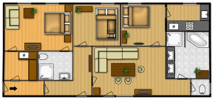 2. 1 Twin Bunk Bed and 1 King Bed