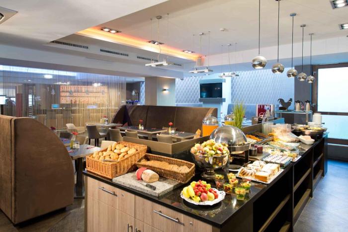 Hotel close center. Tram and bus connection. Very polite reception, fast in booking. Nice douple room with clean bathroom. Some noise from the elevator. Continental buffet breakfast, awful...