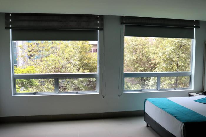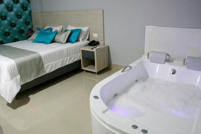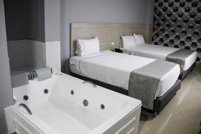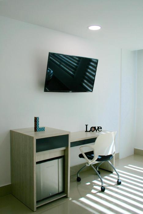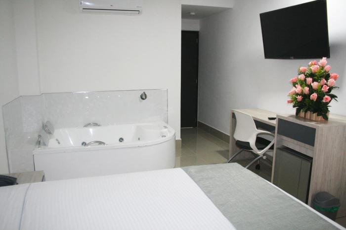 This hotel warmly welcomes guests in Medellin.
