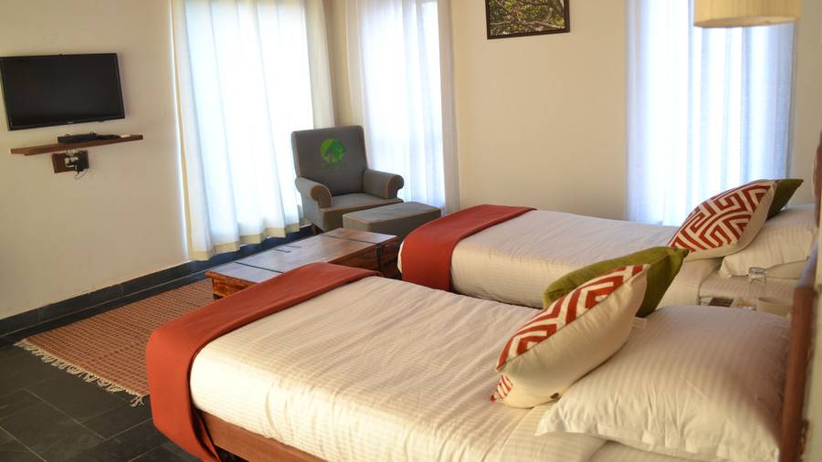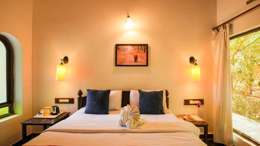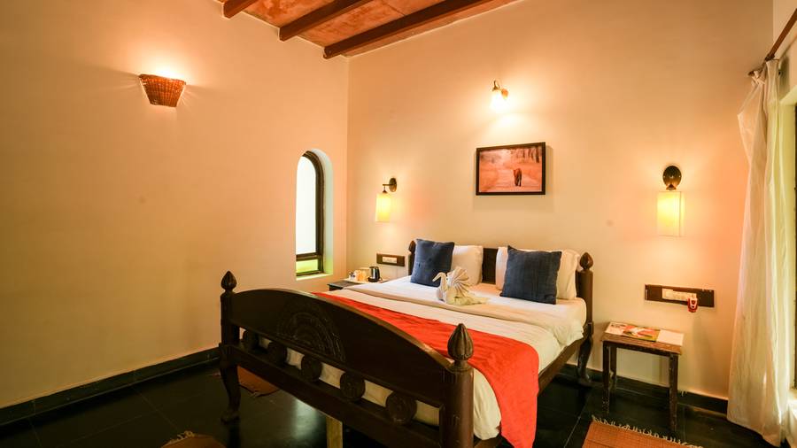 The resort offers Deluxe Rooms, Super Deluxe Cottages, Suite and Family Suite. Each room features a separate sit-out area overlooking the river and offers facilities like television, air conditioner, coffee maker, attached bathrooms with essential toiletries and more.