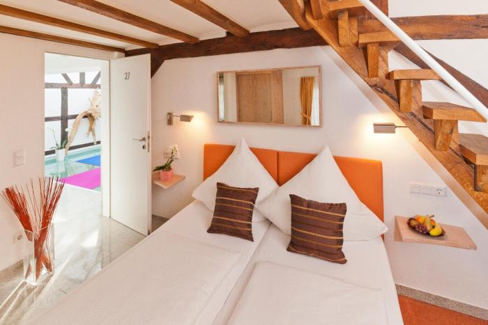 a beautifull little romantic room in a "Fachwerkhaus" and a warm welcome by the staff. Superb rain-shower , senseo-coffee and a bottle of Gerolsteiner in the room and a "glass sekt" to welcome us. A...