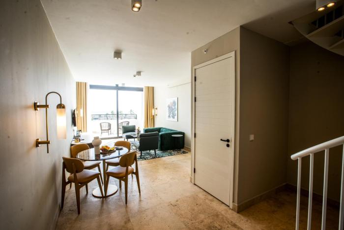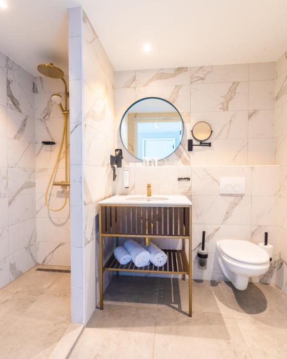 Air conditioning ensures that rooms maintain comfortable temperatures. Guests can enjoy the sea view from a balcony or terrace. Rooms have a double bed or a king-size bed. A safe, a minibar and a desk are also available. Guests will also find a tea/coffee station included among the standard features. An ironing set is provided for guests' convenience. A direct dial telephone, a television with cable channels and WiFi (no extra charge) are provided as well. Bathrooms are equipped with a shower and a bathtub, as well as a hairdryer. For extra comfort in the bathrooms, guests are offered cosmetic products. Family rooms are available for parents with children.