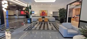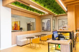 The hotel has 265 rooms, including 112 single rooms and 127 double rooms, which are located on 15 stories and are reachable by elevator. Check-in and check-out are possible at any time at the 24-hour reception desk. A coat check, a safe, a currency exchange service, room service, a laundry service, a conference room and a business center are available. Wireless internet access allows guests to stay connected while on vacation. There are also a number of shops that make for great strolling and browsing. Guests arriving by car can park their vehicles in the parking lot.