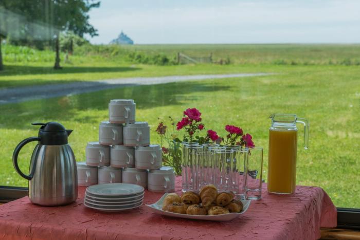 We booked two rooms, the most expensive one was the one with the view on the Mont Michel. That was disappointing, really don't take the room for the view the trees where bin front of the view and you...