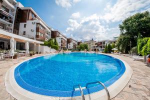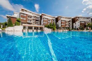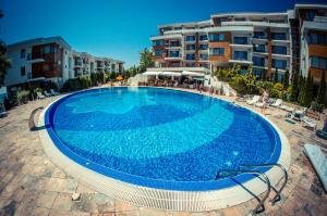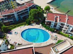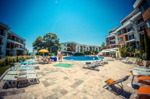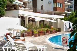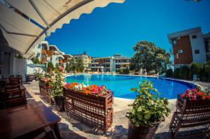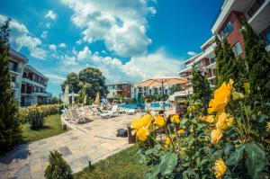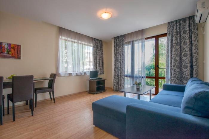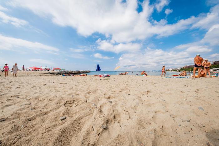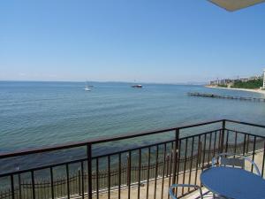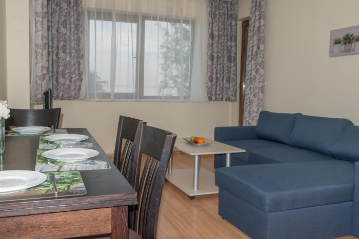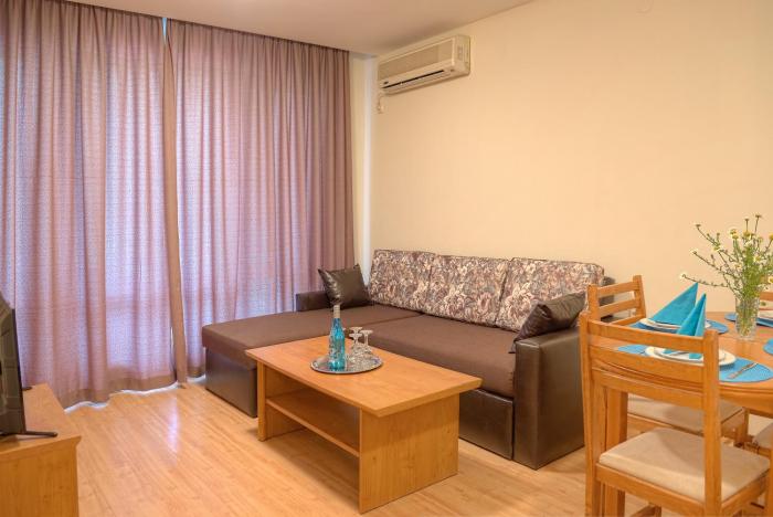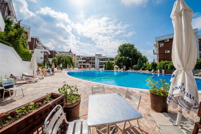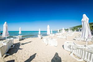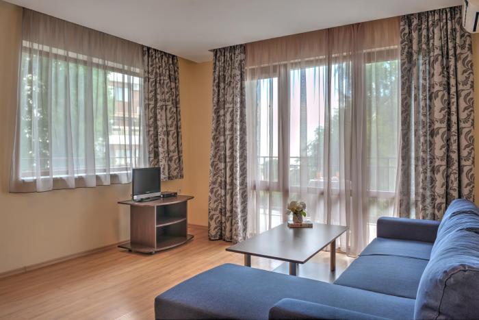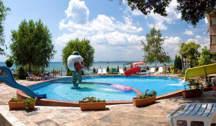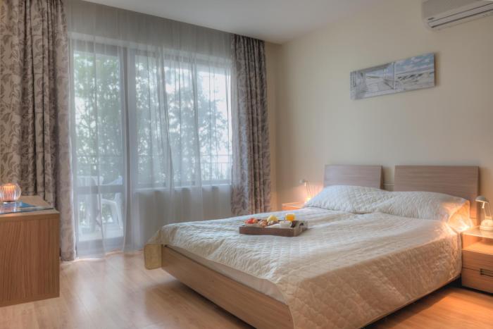 + The room was great (they gave us an upgrade) and the beach is right there. - The staff not really friendly if you don't speak Russian or Bulgarian. - They have a strange policy for the sunbeds...