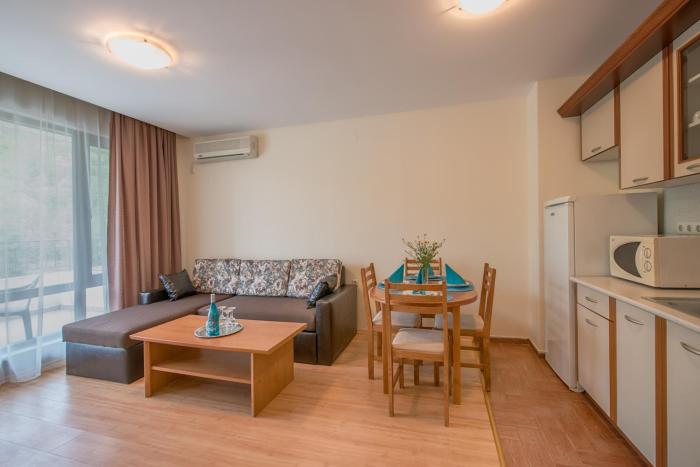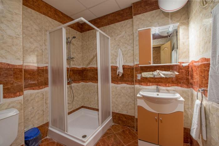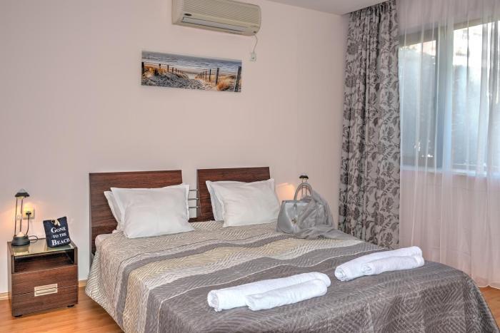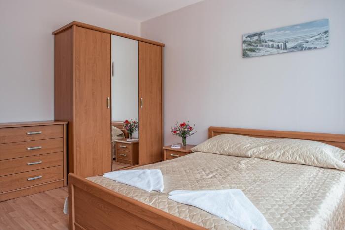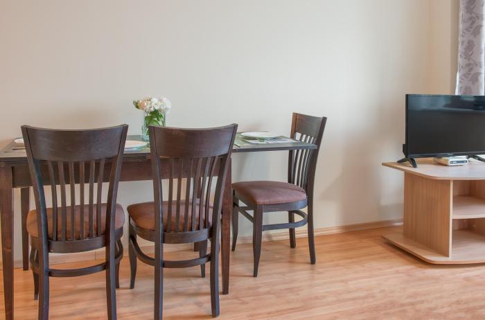 Rooms are equipped with air conditioning and individually adjustable heating. Some rooms have a balcony, which gives guests additional space for rest and relaxation. Rooms include a double bed. Guests can also reserve separate bedrooms. Children's beds can be requested for younger guests. There is a fully-equipped kitchenette with a refrigerator, cooktop, microwave and tea/coffee station. An ironing set is provided for guests' convenience. A television with satellite/cable channels and WiFi are provided as well. Bathrooms are equipped with a shower and include a hairdryer.