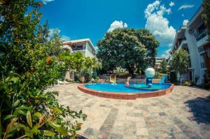 The apartment hotel has an elevator and features 100 apartments. Staffed 24 hours a day, the reception desk makes check-in and check-out easy. A baggage storage service, a currency exchange service and a laundry service are available. Wireless internet access allows guests to stay connected while on vacation. There are a number of shops, including a supermarket. The grounds of the hotel feature a playground and a lovely garden. Guests arriving by car can park their vehicles in the parking lot.