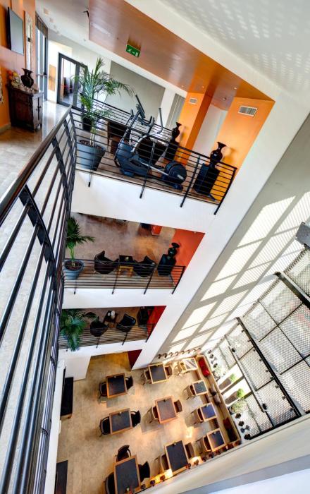 After an eventful day, guests can work out and recharge in the gym.