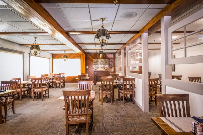 The dining area includes a restaurant and a bar. Breakfast, brunch, lunch and dinner are available.