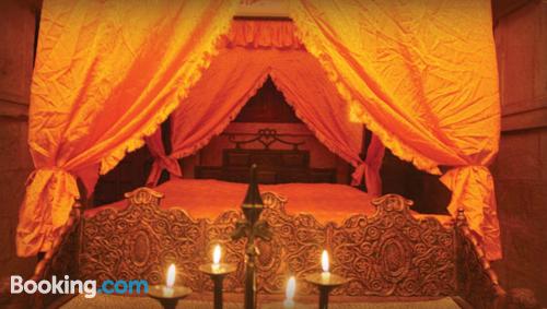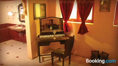 The haveli is atmospheric and beautiful with gorgeous artifacts strewn all over the place and a nice rooftop with a lovely view of the fort. The only thing which irked us is the staff member (Ashu...