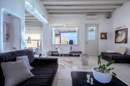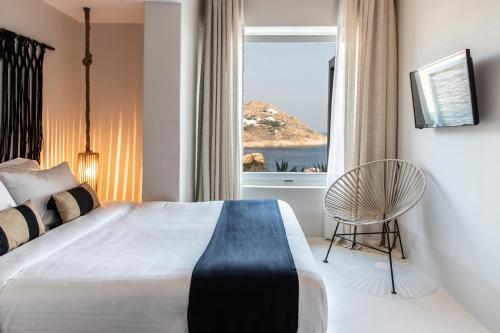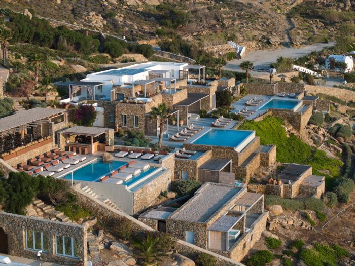 This hotel welcomes guests in Mykonos.