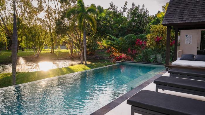 The outdoor pool complex is ideal for exercise and relaxation. The hot tub in the pool area promises pure relaxation. There are many ways to relax or stay active at the resort, including tennis, a gym, a spa, a sauna, massage treatments and Ayurveda treatments.