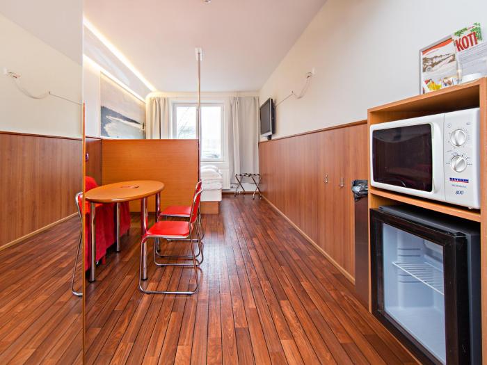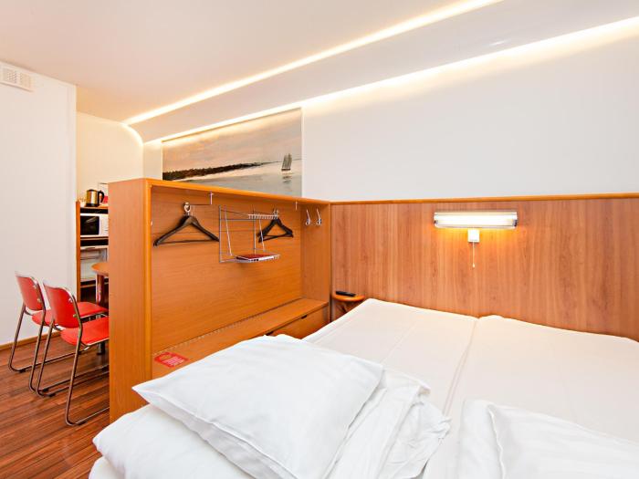 Rooms have a double bed or a sofa bed. A kitchenette with a microwave and a tea/coffee station is also provided as a standard feature. Equipped with a TV and WiFi, the rooms provide many ways for guests to stay connected and entertained. Family rooms are available for parents with children.