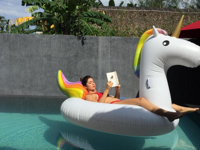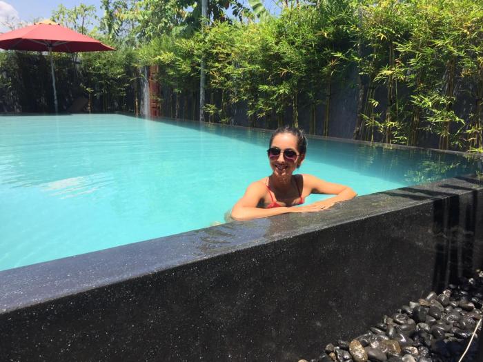 Guests can enjoy a refreshing swim in the outdoor pool area.
