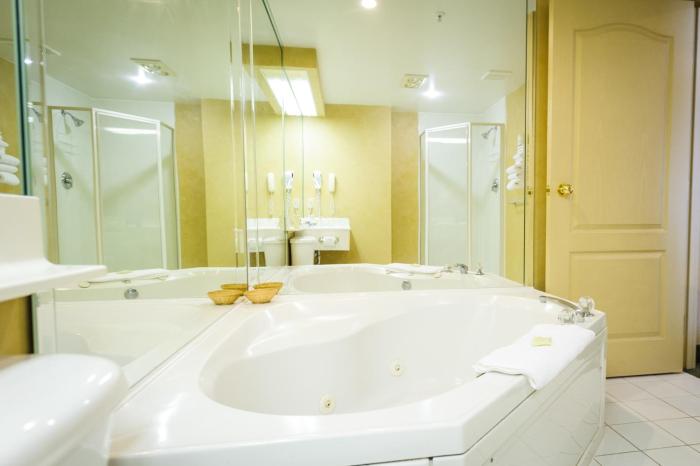 A relaxing swim in the pool area and soothing soak in the hot tub offer the perfect way to unwind. Recreational activities and facilities at the hotel include miniature golf, golf, a gym and a sauna.