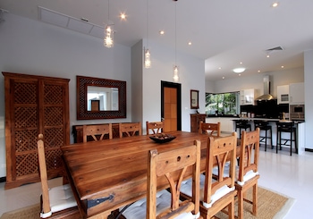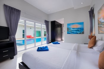 Good villa build quality, great pool, good quality beds, a great kitchen and powerful airconditioning. Helped us with Taxi and room services were awesome. Location is 45 min from Patong in a car...