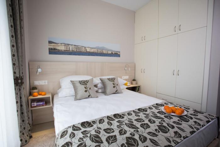 This apartment complex warmly welcomes guests in Thessaloniki.