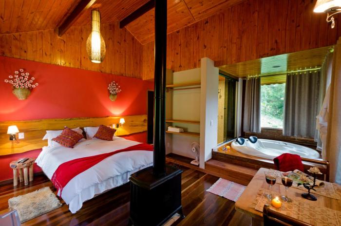 O lugar é perfeito! Friozinho ótimo, lareira no quarto e café da manhã delicioso. Wi-Fi bom. O Ponto negativo : teto do quarto muito baixo, não tem frigobar, chuveiro não esquentava , e a noite não...