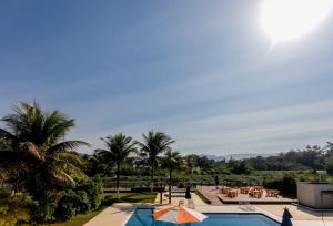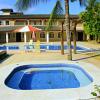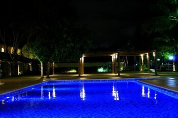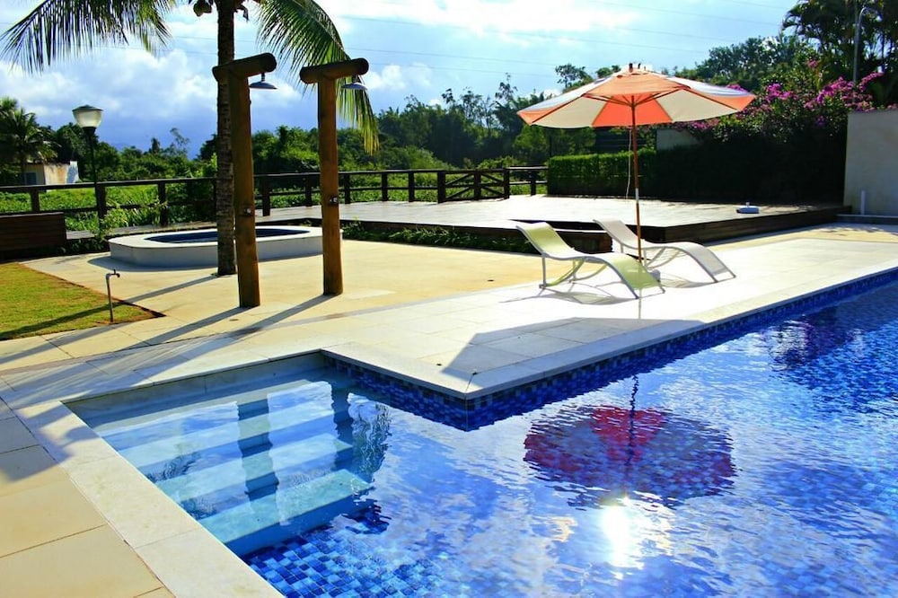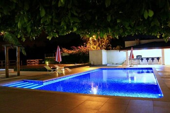 Guests can enjoy a refreshing swim in the outdoor pool area.