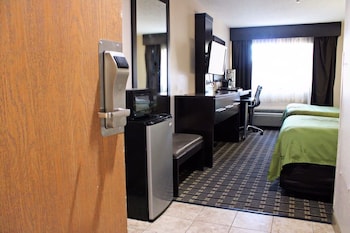 Make yourself at home in one of the 117 air-conditioned rooms featuring refrigerators and microwaves. 32-inch LED televisions with cable programming provide entertainment, while complimentary wireless Internet access keeps you connected. Private bathrooms with shower/tub combinations feature rainfall showerheads and complimentary toiletries. Conveniences include desks and coffee/tea makers, as well as phones with free local calls.