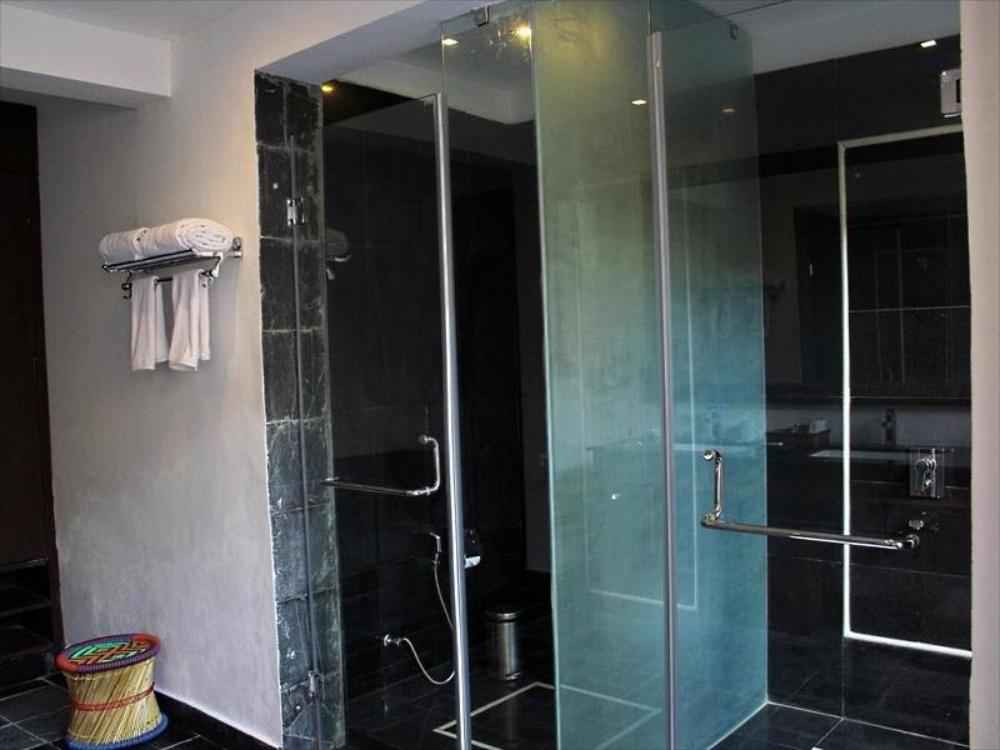 Large room with nice shower. Room has both indoor and outdoor showers. It is nice to have a pool to relax by between safaris, but the grounds need some maintenance. Food is good multi cuisine...
