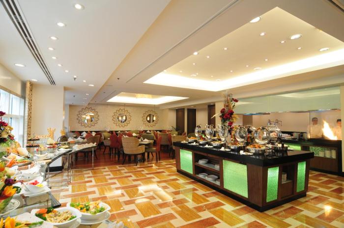 Dining facilities include a restaurant, a dining room, a café and a bar. A wide variety of dishes are served at all three main mealtimes. Guests can enjoy lunch and dinner as a set menu.