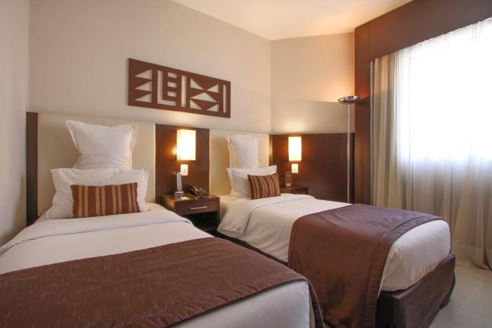 98 apartments, 98 single rooms and 98 double rooms are located on 15 stories and can be reached by elevator. Check-in and check-out are possible at any time at the 24-hour reception desk. The hotel provides a safe, room service and a laundry service. Wireless internet access is provided in public areas. A garden provides extra space for rest and relaxation in the open air. Guests arriving by car can park their vehicles in the parking lot.