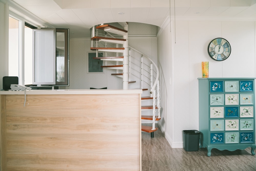 Saipan Emerald Villa is a Mediterranean-style hotel, designed by a Korean architect. Its ideal location on the mountain side offers views of the 'seven-colour sea'.