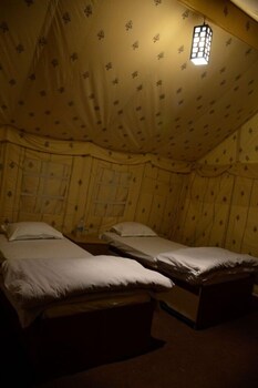Staff is very good tent was clean toilet is clean food was wearing testi staff and owner good sand dunes and folk dance princes nearest in the property 1 km area so I enjoy on the dunes food...