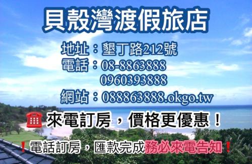 With a stay at Seashell Bay Hotel in Hengchun (Big Beach), you'll be steps from Kenting National Park and 6 minutes by foot from Kenting Night Market. This beach guesthouse is 12.5 mi (20 km) from National Museum of Marine Biology and Aquarium and 0.8 mi (1.3 km) from Little Bay Beach.