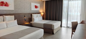 Guests can cool off in one of the 3 outdoor pools. There is a children's swimming area as well. Pure relaxation in the hot tub, fun on the waterslide and refreshing drinks at the pool bar – guests will experience just how rich and varied a day in the water can be. Outdoor lounge chairs and umbrellas on the terrace invite guests to relax and unwind. With windsurfing, paddle boating, banana boat rides, catamaraning and snorkeling available, fans of water sports will have plenty to choose from. Guests can enjoy a wide range of indoor sports, including a gym, table tennis, billiards, darts, yoga and table football. Various wellness options are available at the resort, including a spa, a sauna, a steam bath, a beauty salon, massage treatments and a solarium. Additional recreational activities include a kids' club, a dance club and a nightclub. Copyright GIATA 2004 - 2022. Multilingual, powered by www.giata.com for client no. 126311