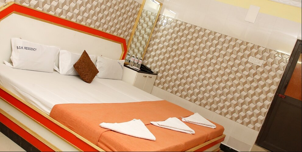 We stayed in Ssk residency for a night during Athi Varadar festival. We stayed in a family room of 6. Beds were good and soft. Room was clean. But no proper ventilation in the room. Bathroom looks...