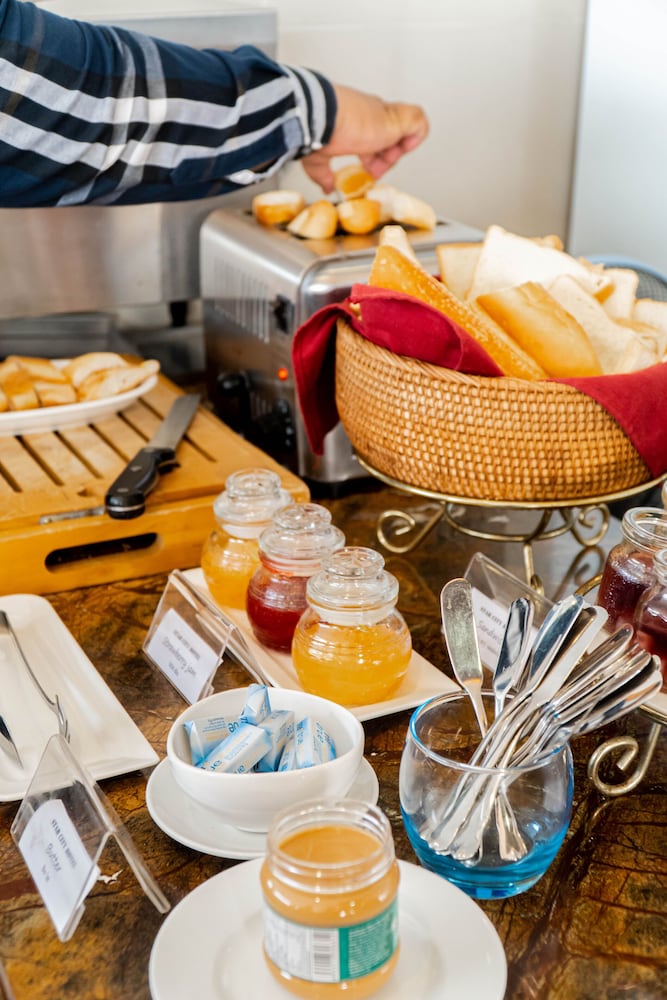 The hotel includes a restaurant and a bar.