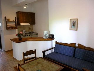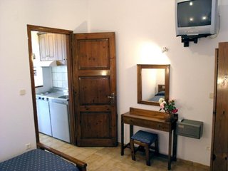 Clean, cosy and well equiped rooms. Kitchen with full equipment (literally all that could be needed). 2 tv's (if you go to Crete to watch tv), each room with a/c. Comfortable beds but very high...