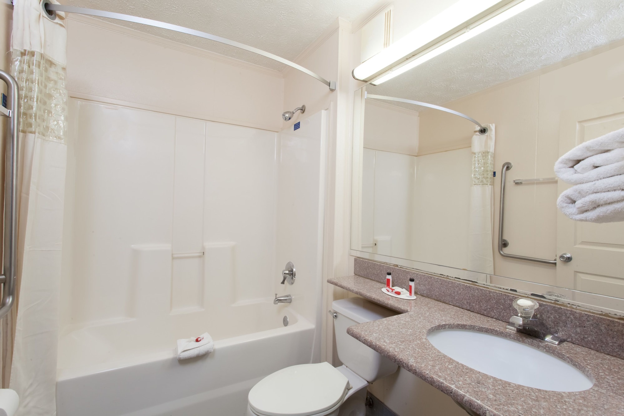 Make yourself at home in one of the 51 air-conditioned rooms featuring refrigerators and microwaves. Flat-screen televisions with cable programming provide entertainment, while complimentary wireless Internet access keeps you connected. Private bathrooms with shower/tub combinations feature complimentary toiletries and hair dryers. Conveniences include safes and coffee/tea makers, and housekeeping is provided daily.
