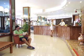 The hotel is located up a fairly steep hill at the marina end of the promenade. The entrance foyer is bright and airy and the reception staff are competent - some are more helpful than others. Our...