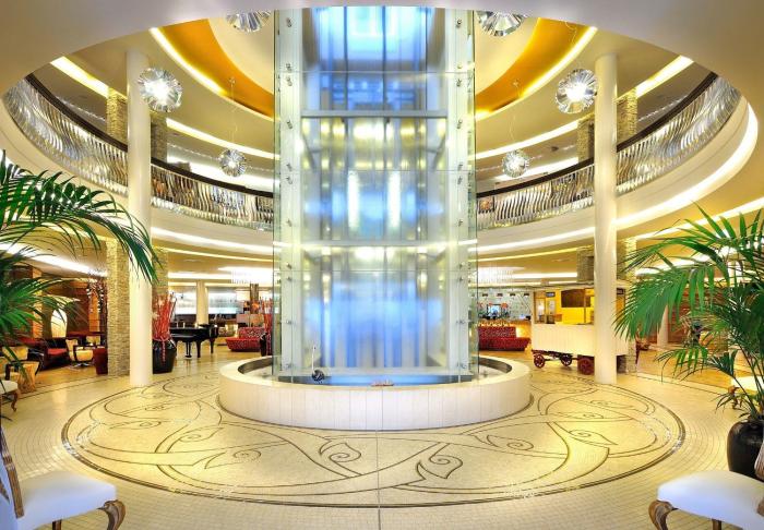 The indoor and outdoor pools are ideal for exercise as well as relaxation. A sun terrace is a great place to while away the hours. A hot tub can soothe sore muscles (no extra charge). For guests who wish to keep active, tennis and golf are available. After an eventful day, guests can work out and recharge in the gym. There is a wellness area with a spa, a sauna, a steam bath and a beauty salon and, for an additional fee, massage treatments and a solarium. A casino offers additional entertainment.