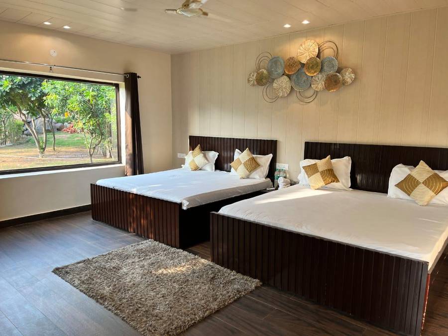 Nestled In The Tranquil Aravali Hills, Bistendu Resorts Gurugram Is A Charming Villa Designed For Intimate Family Gatherings And Celebrations. With Its 7 Elegantly Appointed Rooms, The Resort Offers A Luxurious Yet Cozy Environment Ideal For Birthdays, Anniversaries, And Other Special Occasions.The Serene Surroundings And Exceptional Air Quality Provide A Refreshing Escape From The Hustle And Bustle Of City Life. Guests Can Unwind In The Peaceful Ambiance, Enjoying The Resort’S Favorable Climate And Natural Beauty.