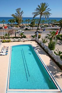 This hotel is situated in a lively area, just 20 yards from the pebble beach, right in Antalya. From here it is very easy for beach vacationers to embark on an exploratory tour and get to know the area better. The nearest airport is Antalya (AYT), situated approximately 15 miles away.